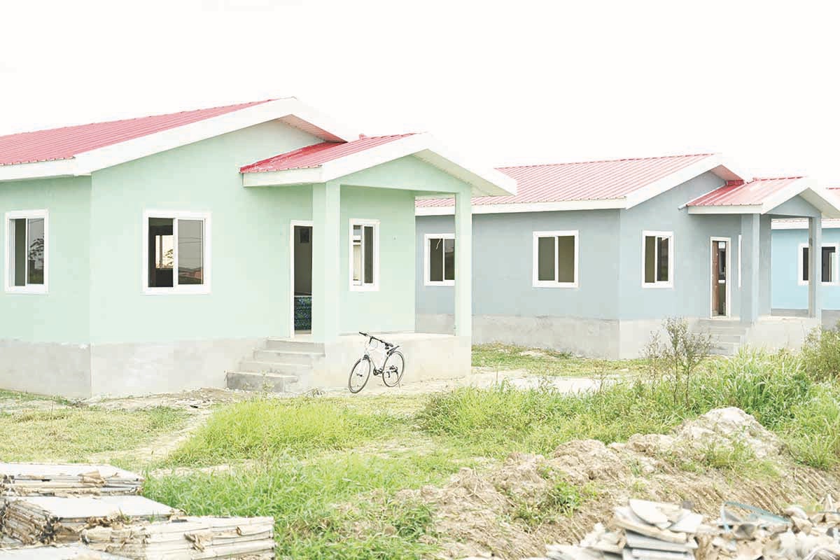 Housing units being constructed under the Government’s national housing programme at the Leonora/Groenveldt Housing Scheme in Region Three are approximately 65 per cent complete.