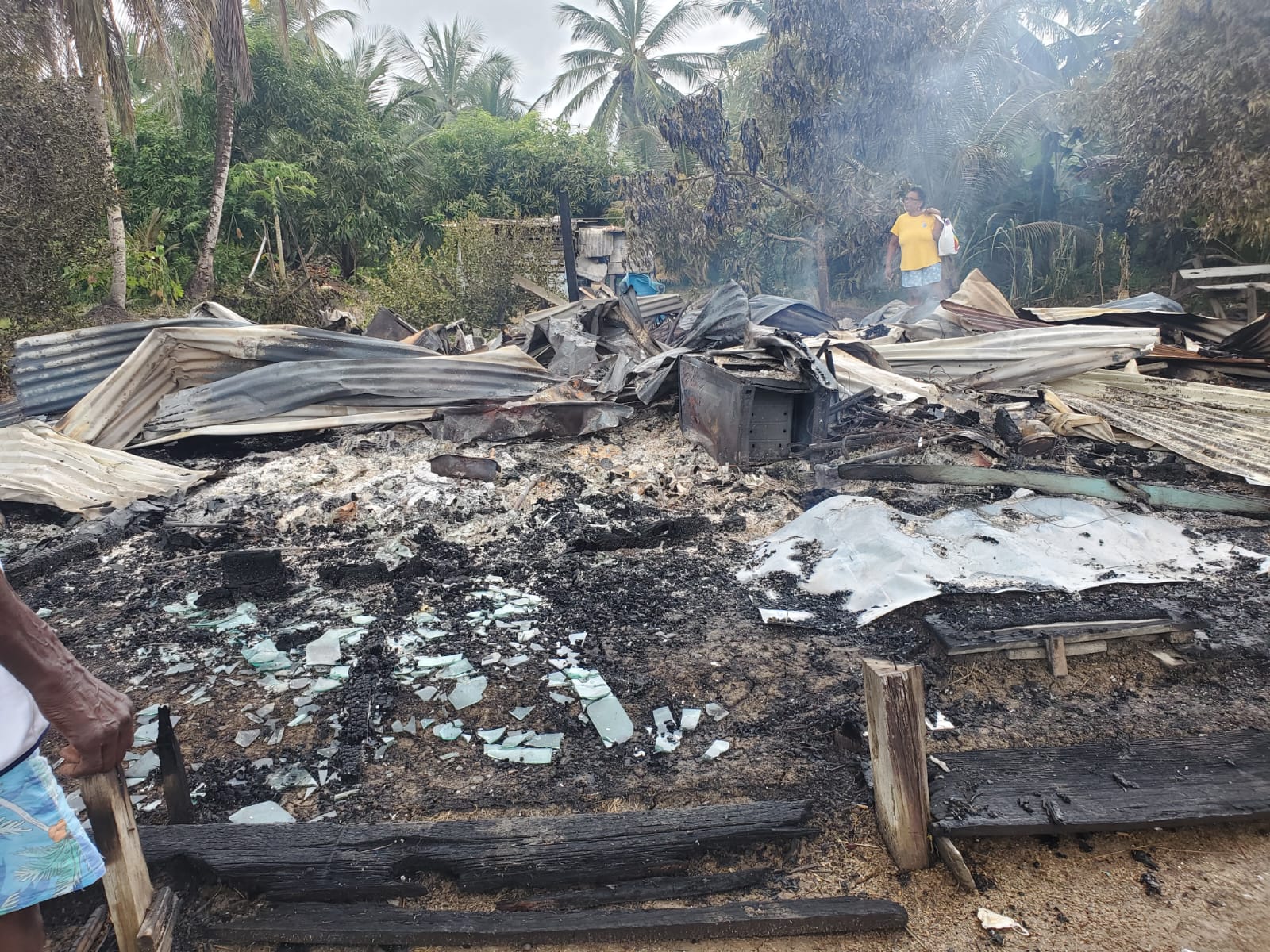 A fire of so far unknown origin has completely destroyed a house along the Lower Pomeroon River, leaving its occupants, including an elderly couple and their teenage grandson, homeless.