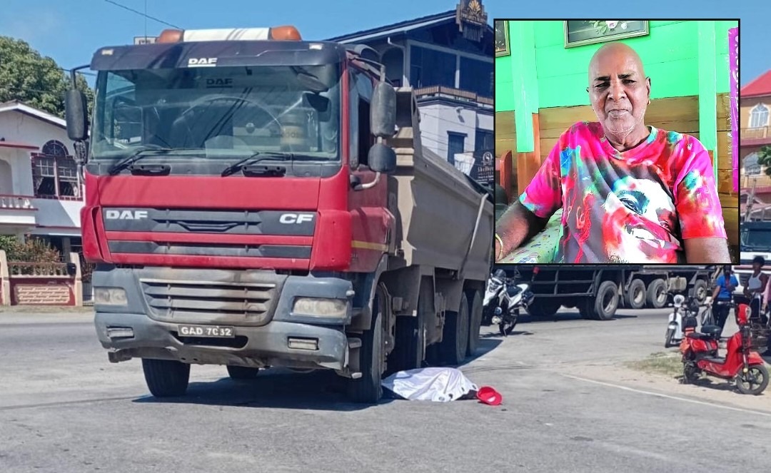 A pensioner in his sixties was killed on Tuesday afternoon after he was struck down and pinned by a heavy-duty truck along the Anna Catherina Public Road, West Coast Demerara (WCD).