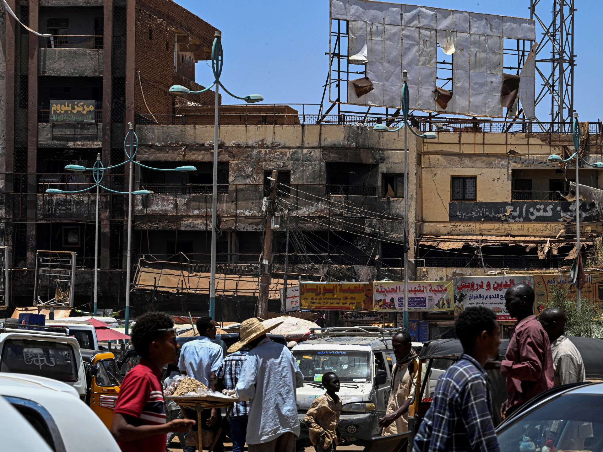 Abdulhafiz Fadl Muhammad, a merchant at the al-Kalakla al-Lafa market in southern Khartoum, says both foot traffic and supply costs have deteriorated sharply. The heat drives customers away from poorly ventilated market spaces, while goods that require refrigeration are increasingly difficult to stock. He has already invested roughly three million Sudanese pounds in a solar power system to keep his business running.